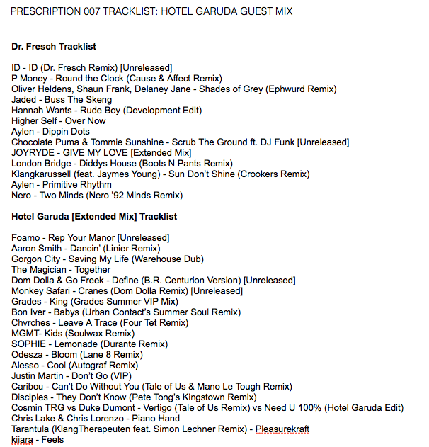 Tracklist from: https://twitter.com/DrFresch/status/651513403232534528/photo/1
